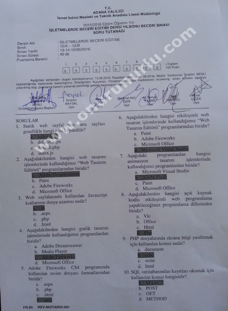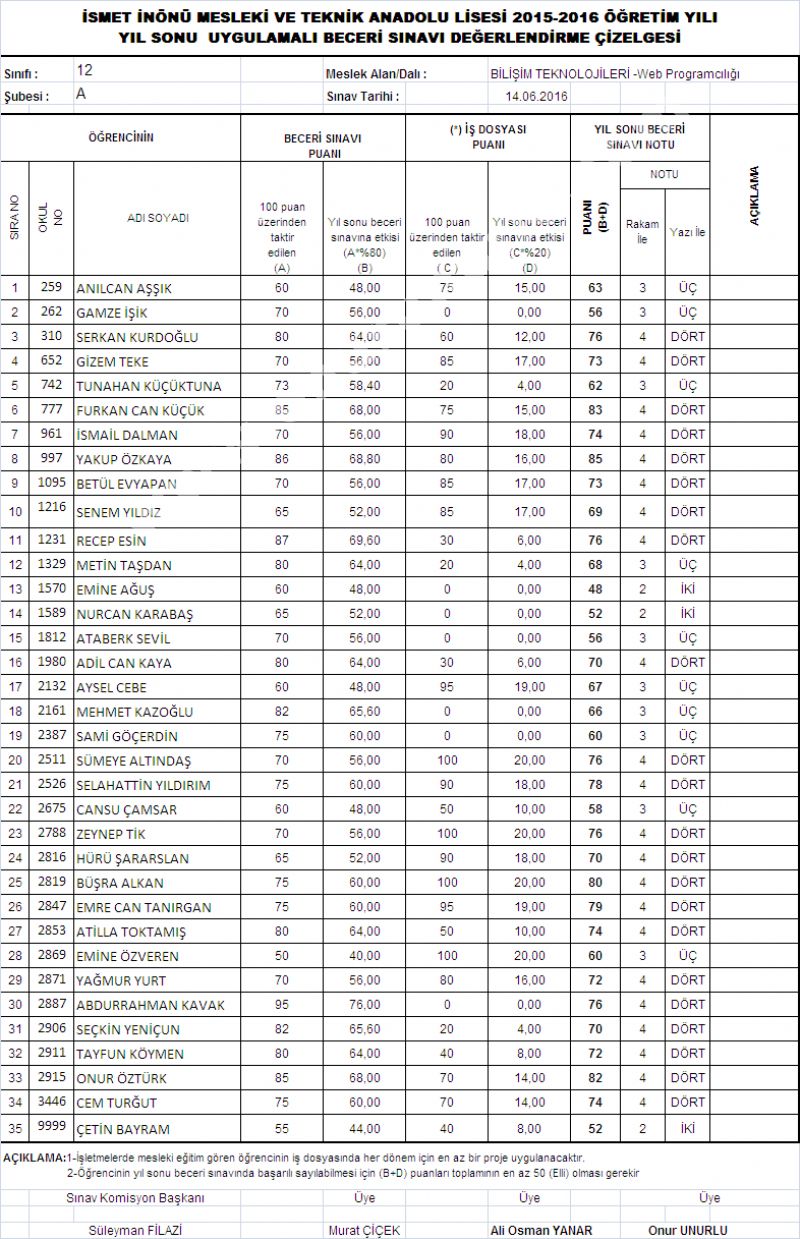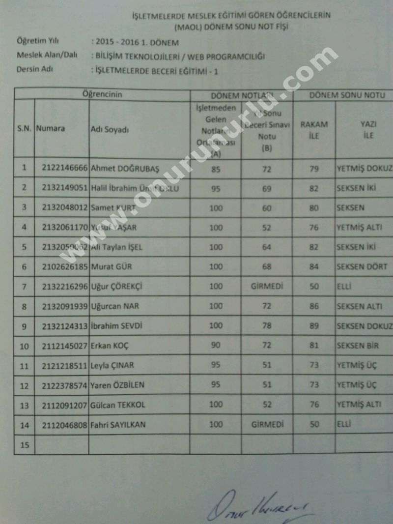 2015 -2016 2.Dönem Bilişim Teknolojilerinin Temelleri