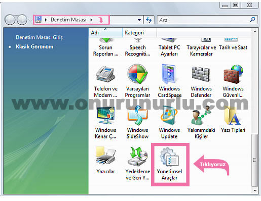 Burada Yönetimsel Araçlar simgesine tıklıyoruz.