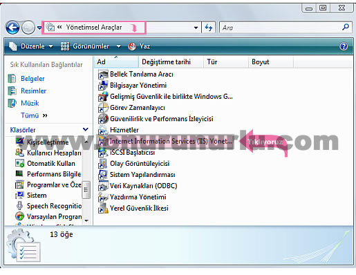 Çıkan ekranda Internet Information Services (IIS) Yöneticisi simgesine tıklıyoruz. Vista’nın ilk kurulumunda bu IIS Manager olarak da görünebilir.