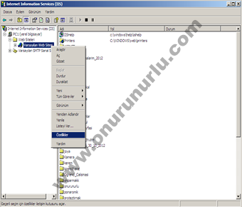 Kurulum yaptıktan sonra Denetim Masasında bulunan Yönetimsel Araçlar sekmesine tıklanılır. Daha sonra Internet Information Services (IIS) tıklanır. Daha sonra aşagıdaki sekme açılacaktır.